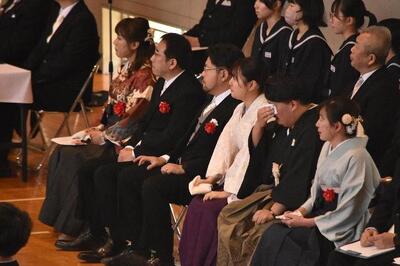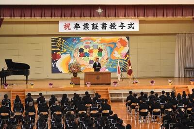 3月14日(土)、卒業式が挙行されました。厳粛な雰囲気の中、在校生、保護者、地域の方、教職員に見守られ、生徒一人ひとりに卒業証書が授与されました。今年度は、体育祭が3軍対抗から2軍対抗となり、生徒会を中心に工夫をしながら準備を進め、感動的なものにすることができました。河北中祭では、どのクラスも合唱のレベルが高く、聞く人を魅了する合唱となりました。地域貢献においても、各種ボランティアや谷地どんがまつりへの積極的な参加など、一人ひとりの意識の高さが見られました。たくさんの場面で活躍が光った3年生!これからの新しいステージでのさらなる活躍を期待します。卒業おめでとう。