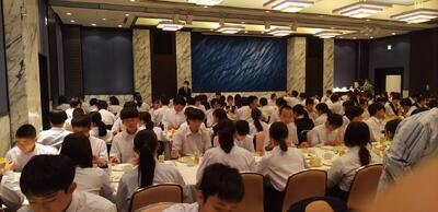 修学旅行中の3年生は全員無事にホテル「モントレ半蔵門」に到着し、夜は東京で活躍されている方の講演をお聞きします。