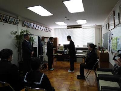 「わくわく文庫贈呈式」心のこもった図書をいただきました。 投稿: 河北中学校 (02/03) 2月2日(月)、日本教育公務員弘済会山形支部から代表者の方がいらして、特別支援学級教育図書贈呈事業として「わくわく文庫」を贈呈していただきました。本との新しい出会いの機会をいただいた生徒たちは、早速読書!本は好奇心を高めたり、安心や勇気を与えてくれたりする大切な存在です。これから大切に活用させていただきます。